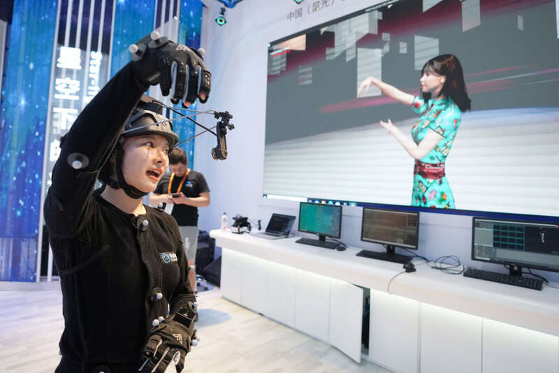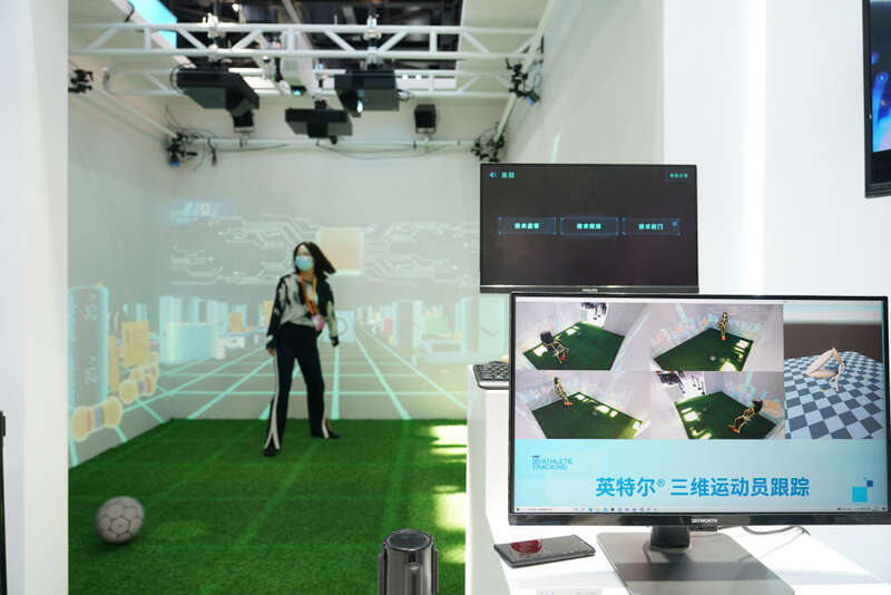 ↑9月1日在国家会议中心拍摄的在2022年服贸会上展示的三维运动员跟踪。