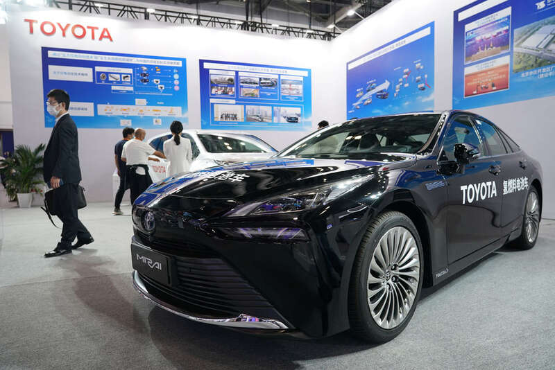 ↑9月1日在国家会议中心拍摄的在2022年服贸会上展出的氢燃料电池车。