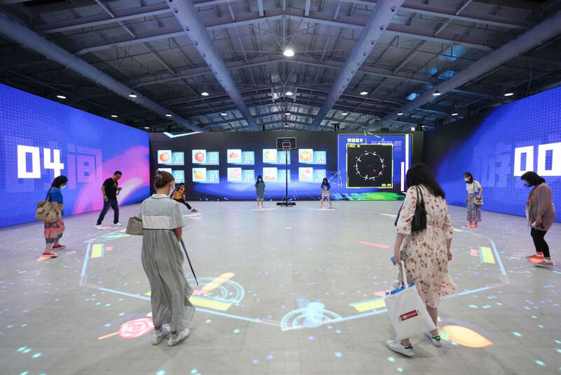 ↑9月1日,在服贸会首钢园区,参观者在元宇宙体验展馆内体验一款互动游戏。