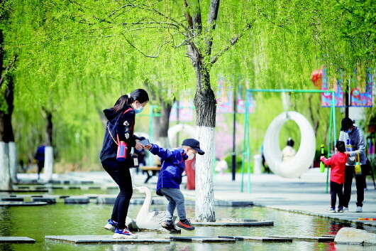 每晚在泉印广场准时上演的“光影·水秀”就是特色观赏项目之一。“我住在附近,孩子喜欢玩水,不用大老远跑到景区去,今年夏天经常来这里逛。”市民孙女士告诉记者,孩子喜欢在泉印广场西侧的“清泉石上流”处踩水、玩水枪,一家人空闲时也会在街区内放松休闲。“特色小店很多,吃喝玩乐都有,一家人能从下午玩到晚上,比较方便、惬意。”