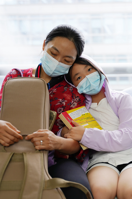7月22日,北京地铁上,上完兴趣班的女孩与母亲在回家途中,女孩靠在睡着的母亲身旁。