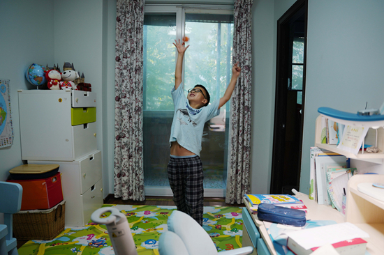 7月6日,北京,马克在房间里玩悠悠球。他的暑假生活即将开始。