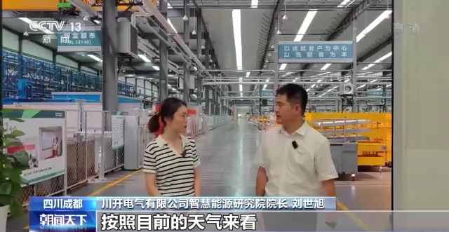 川开电气有限公司智慧能源研究院院长 刘世旭:川开光伏总共装机是1.72兆瓦,总共光伏的组件数量是6880个光伏组件。按照目前的天气来看,一天可以发4000到5000度电左右,基本上可以保障当下我们园区三分之一左右的生产负荷。