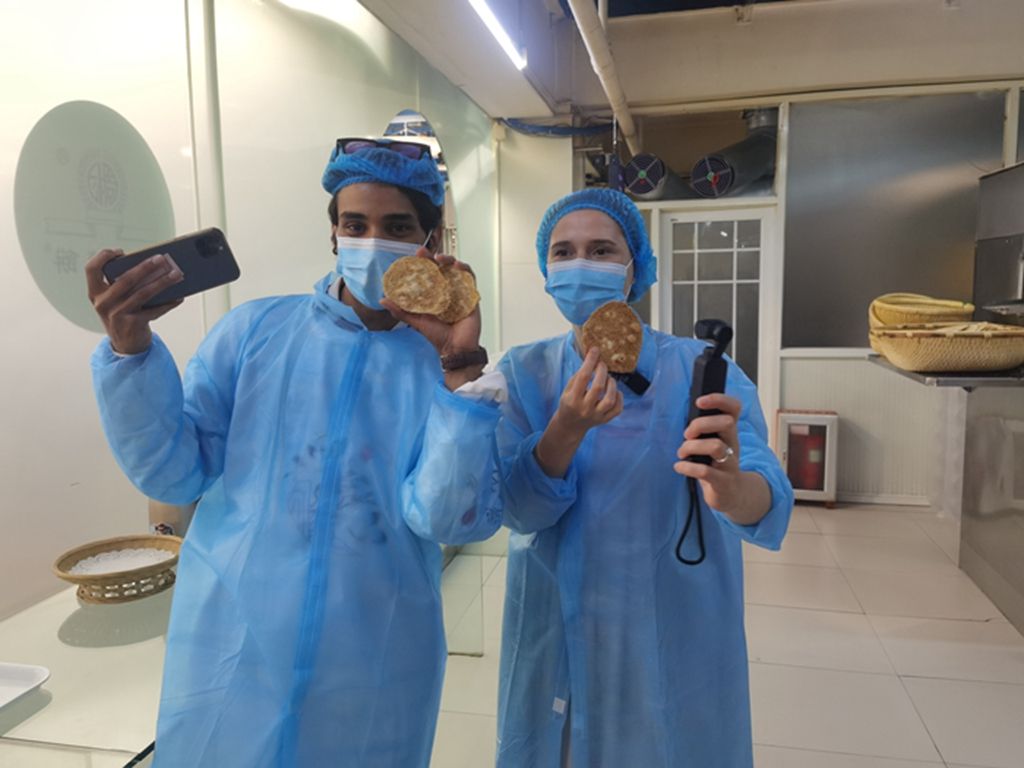 周村烧饼博物馆是外国视频博主们的一个期待。他们在品尝非物质文化遗产周村烧饼后,进一步体验了亲手制作的过程。他们兴致勃勃,在专业老师手把手的指导下,反复尝试,“好不容易”掌握了制作烧饼的基本要领,成功做出了一个又一个烧饼。