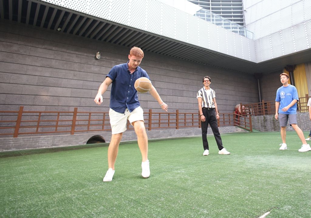 金峻范表示:“平时我们都是在很大的场地里踢足球,今天体验的蹴鞠有点像用脚打篮球的感觉,虽然我也经常踢球,但是今天还是感觉有点吃力,最后好不容易用头顶球才成功。”