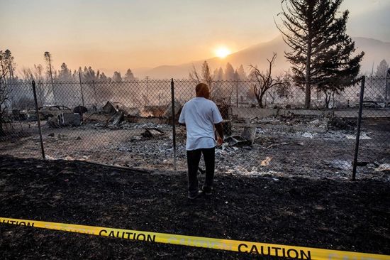 当地时间9月3日,Dave Rodgers在检查他被“磨坊之火”(Mill Fire)烧毁的家。