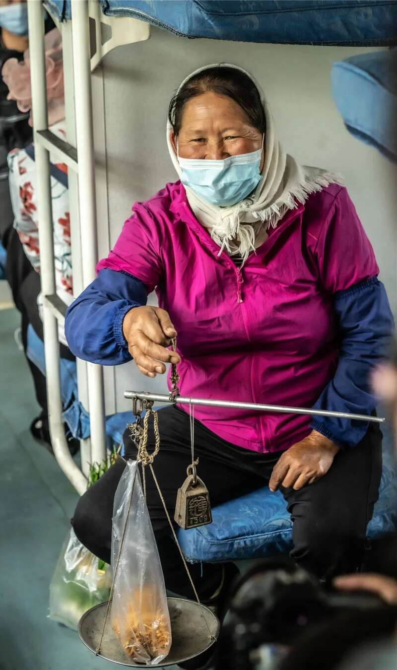 他们携带着自家出产的农产品,乘坐“慢火车”前往镇上销售。