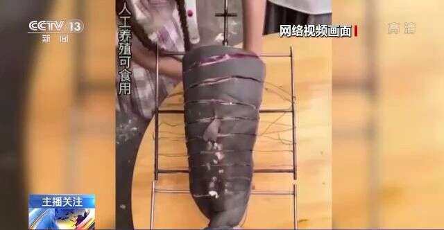 该段视频全程都在左上角标注“人工养殖可食用”,但专家指出,标注“人工养殖”并不能作为主播规避违法风险的凭仗。