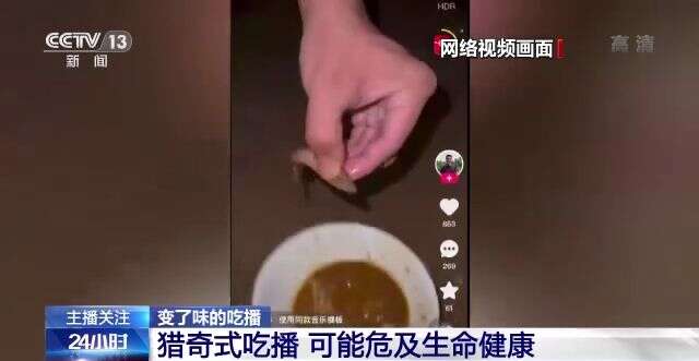 中国传媒大学网络法与知识产权研究中心主任 王四新:平台它的责任首先就是避免这一类猎奇式吃播行为在自己平台上形成一种氛围,发现有猎奇式直播来诱导人们去效仿的这种情况就应该立即采取措施,比如像账户冻结,或者没收非法所得,甚至严重的关停等等。