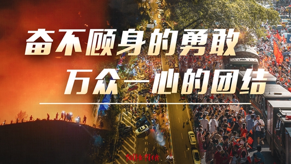 英雄的人民点亮英雄的城市。周瑄说:“那里本没有路,是无数志愿者的脚步。那路本没有灯,是无数志愿者的头灯,照亮了用身躯铸造的‘防火长城’。”