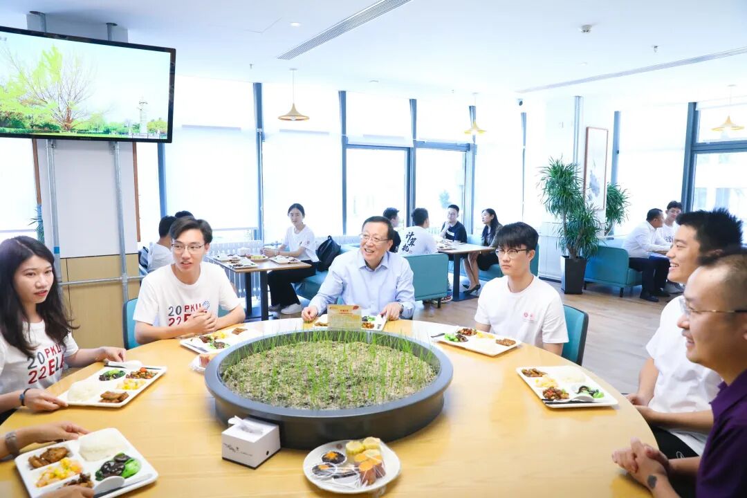 校领导一行来到新校区的馨园食堂,看望了食堂工作人员,并与同学们一起用餐。 恰逢中秋节临近,书记、校长祝同学们中秋愉快,希望大家注意身体健康,在北大愉快地生活和学习。