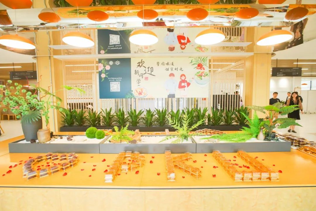 餐桌上摆放的是一盆禾苗,这是由北京大学现代农学院培育的水稻,寓意“谁知盘中餐,粒粒皆辛苦”,提醒着同学们要珍惜粮食。