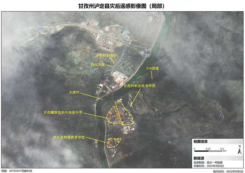 中国青年报客户端北京9月6日电(中青报·中青网记者 王聪聪)一份刚刚公布的卫星数据显示,四川泸定县城3所学校外观完好无受损。