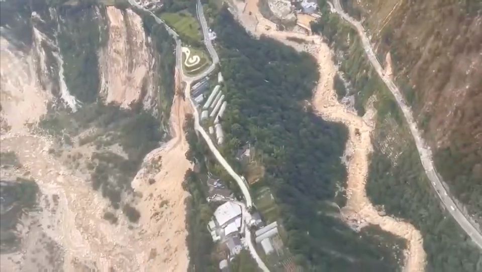 泸定地震导致大量的山体滑坡。图据成都市消防救援支队航拍视频截图
