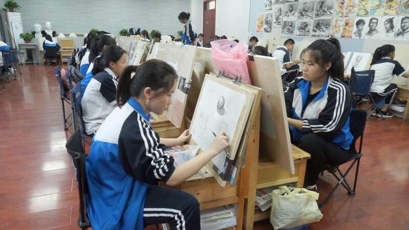 河南省新乡市铁路第二中学的学生们正在参加美术活动。新华社记者 刘振坤 摄