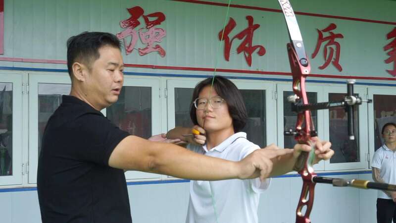 河南省新乡市铁路第二中学的老师正在指导学生射箭。新华社记者 刘振坤 摄