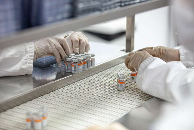 ↑这是2022年8月31日在巴西圣保罗州布坦坦研究所拍摄的克尔来福新冠疫苗。