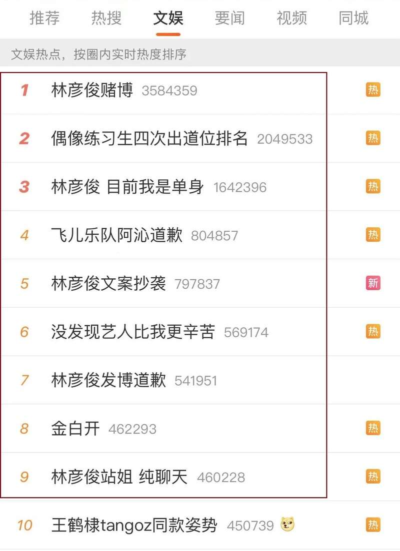 直至昨天中午,微博文娱热搜榜前10名,竟然9条与之相关。然而对绝大多数普通用户而言,看到这一堆热搜时第一个反应:林彦俊是谁?