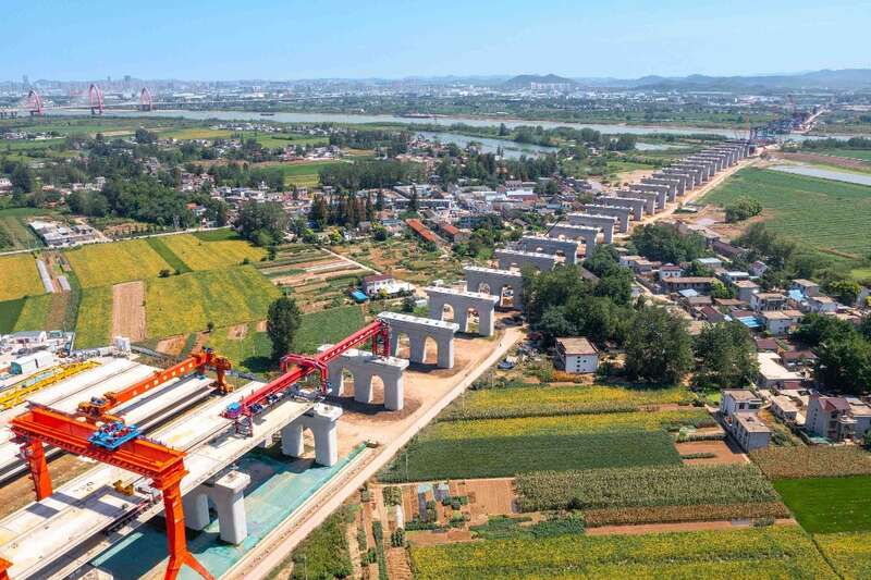 巢湖至马鞍山城际铁路是国家“八纵八横”高铁网沪汉蓉快速通道合肥至上海间的重要组成部分,是马鞍山市与安徽省会合肥的直接联通线,也是安徽通往上海等长三角城市的高铁新通道。该铁路横跨长江,引桥区域属于泄洪区,地基承载力要求高,因此采用40.6米大跨度铁路简支梁,可有效减少阻流及桥墩连接共振点,这在安徽省内铁路建设领域尚属首次。