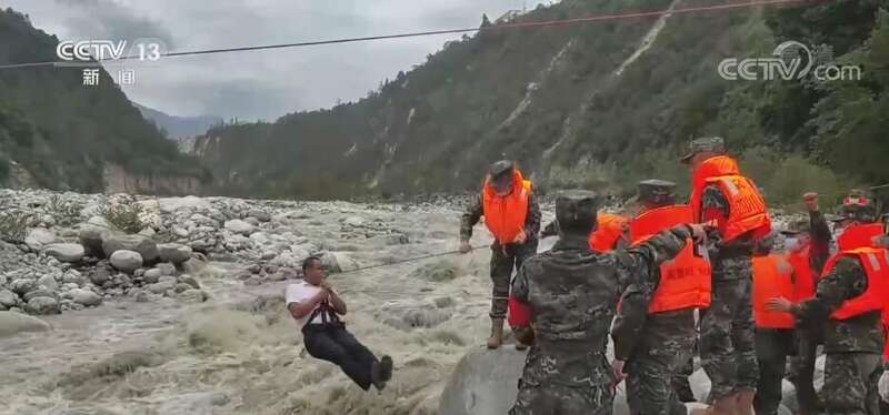 中午时分,一名4岁的男孩在救援人员的保护下第一个成功溜索过河,与在岸边等待的父母成功团聚。当天,救援队通过溜索转移31名被困群众,转移出的群众目前已得到妥善安置。