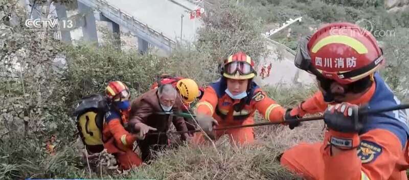 道路被阻断 消防员搭建绳桥翻越垮塌点