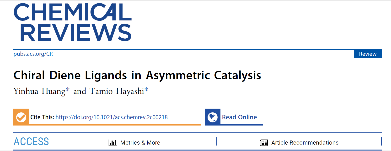 1. Huang, Y.; Hayashi, T. Chem. Rev. 2022, DOI: 10.1021/acs.chemrev.2c00218