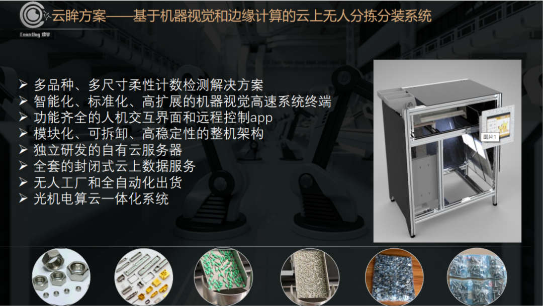 面向当前各类微小部件计数的海量市场需求,以及传统手工式、机械式和光电式计数在生产效率、经济效益方面的不足,Counting康零团队(指导老师:邓前松,余文峰 项目负责人:王欧阳旭)推出了零件计数系统项目,提供了一款成熟度高的智能化、标准化的机器视觉高速计数分检产品,并辅以配套app和云上数据增值服务,完美解决了上述传统计数的难题。