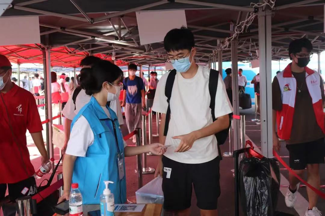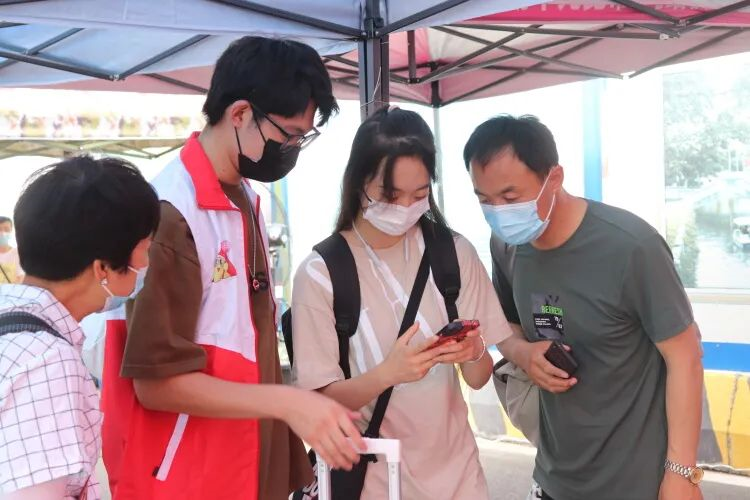 同时,机关教工志愿者全天在报到点和核酸检测点为学生提供引导服务,他们胸前挂着工作证,为新生报到进行引导,特别是对入校审核程序出现异常的学生积极协调帮助,与学生志愿者一道,为学校迎新工作提供了助力。机关教工志愿者程敏说:“作为迎新志愿者,特别是一名党员志愿者,我觉得很有意义。希望新生能在踏入华园的那一刻就感受到我们的热情高效,感受到教工党员的风采。”