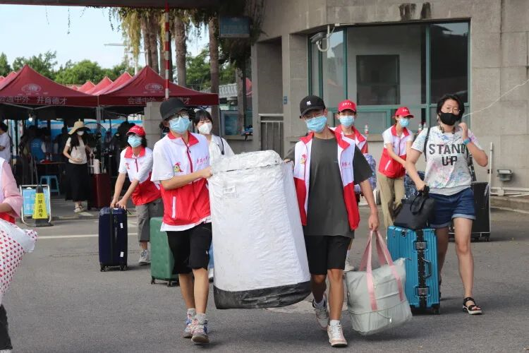 在这群志愿者中,还有一道特别“高大”的风景线——来自体育学院的十余名学校学生男子篮球队的球员。他们也加入校门迎新引导、搬运行李的志愿服务行列中,队员陈鹤鸣就是其中之一。他表示,因为训练需要,球员们早早就来到学校,完成了疫情防控相关要求,“大家参加志愿服务,也是以另一种方式为校园贡献出一份自己的力量”。