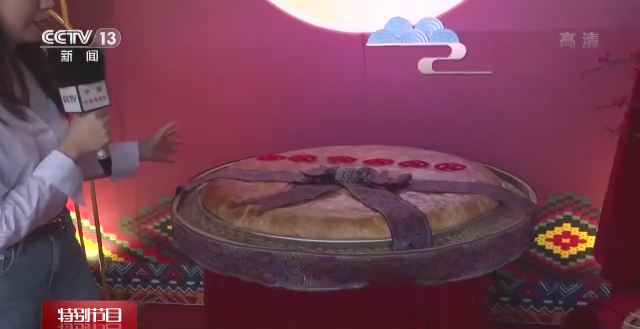 总台记者 祝镜涵:中秋当然少不了吃月饼,畲族老乡们做好了特色月饼,最显眼的一块,就是正中间这一块直径90厘米,足足有一百斤的“巨无霸”月饼,这块月饼是用了200个蛋黄做成的。