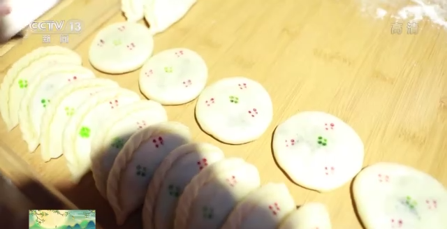 总台记者 鄢俊琪:在宜春当地,中秋节不但会舞火龙。吃月饼、赏明月当然也是必不可少的项目。宜春这里的月饼别具特色。这位师傅正在制作的就是宜春当地人的中秋必备美食——月亮饼以及月亮饺。这个圆圆的是月亮饼,半圆形的是月亮饺,里面包的馅料主要是由芝麻、白糖以及猪油混制而成的,口感是甜甜糯糯的,但是一点也不腻。这位师傅告诉我说,其实月亮饼和月亮饺,都是属于“温汤发糕”这一种类当中。“温汤发糕”在宜春当地已经有了600多年的制作历史,他们也会根据节日的不同,做出不同的造型,所以在中秋节的时候,他们就做出了月亮饼、月亮饺这样的发糕。同时,他们还会在发糕上点上红红绿绿的“点花”,表示吉祥,也祈求合家欢乐,让生活甜蜜似糖。