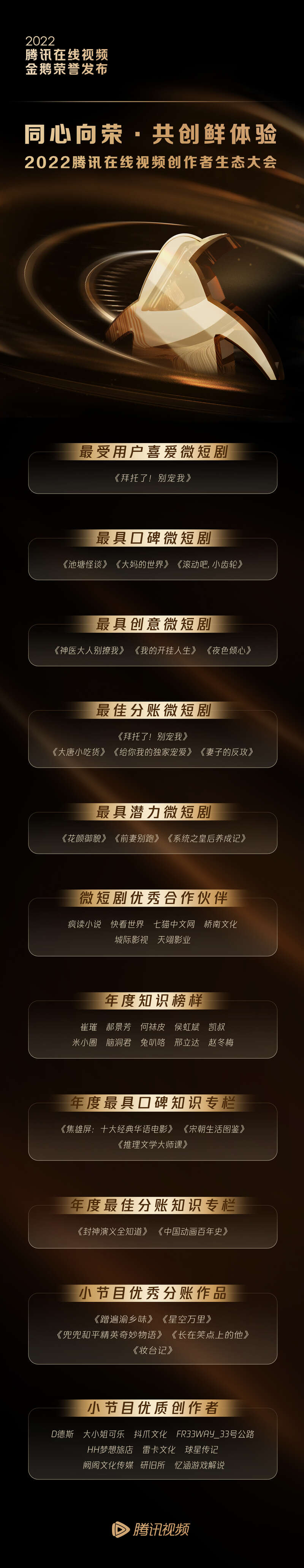 中国青年报客户端讯(中青报·中青网记者 沈杰群)日前,“2022腾讯在线视频金鹅荣誉”发布系列活动在京举行。