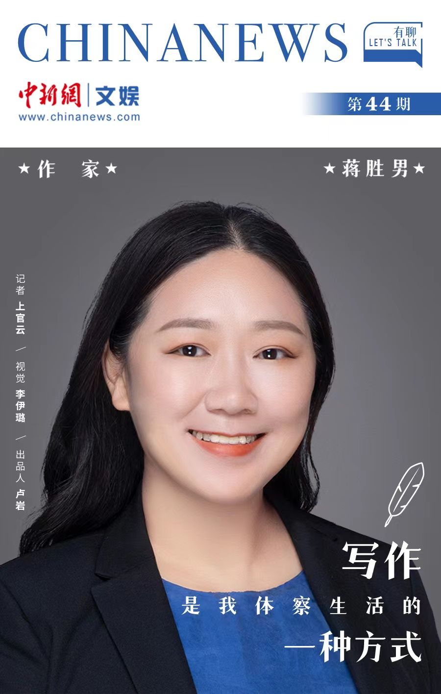 蒋胜男:我平时还是倾向于历史题材的写作,但不论题材是什么,反应的都是当下的现实。