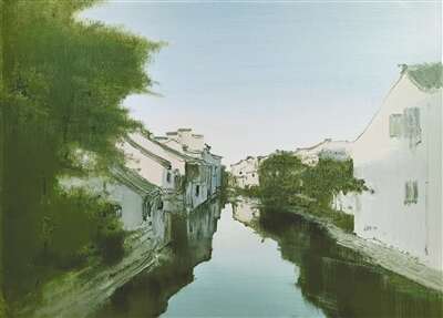 打造宜居水环境是城乡建设的重要组成部分,越来越多的美术工作者将家园美景绘于画卷,留下时代印记。像陆庆龙油画《平江水巷》、翁凯旋油画《水墨同里系列之二》等,皆以江南水乡风景入画,白墙黛瓦的民居与碧绿清澈的河流相映生辉,体现出水与城的和谐共生关系。以江苏书画家为主创成员,来自大运河沿线各省市15位书画家参与创作的《中国大运河史诗图卷》,立足表现大运河全域。画家们历时一年半时间描绘大运河的“前世今生”,突出展现了大运河新貌。画卷以全新的视角,从时间、空间、文化多个维度,勾勒了大运河长达2500余年的开凿与发展历史,既磅礴开合,又细致入微,诗书画印相合,使水利题材中国画创作焕发新活力。
