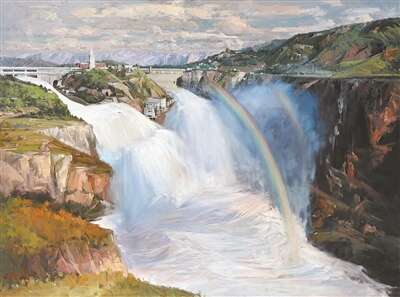 刘杰油画《三门峡大坝》。