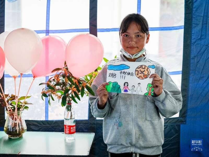 9月10日是中秋节,也是教师节,这些志愿者自费买来气球、彩色贴纸、文具等,将三个帐篷装点成“帐篷课堂”,带领孩子们画画、做游戏、制作创意“月饼”等,一同度过特别的暖心节日。