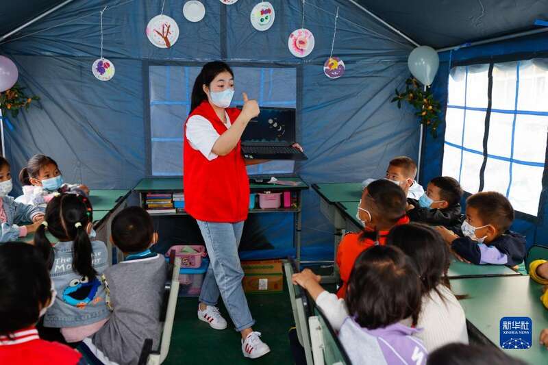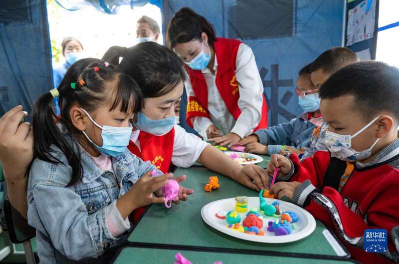 四川泸定地震发生后,泸定县第二中学校成为临时安置点,安置了受灾严重的得妥镇的800多名村民,其中约有50名孩子。自9月6日开始,11名来自泸定县幼儿园和冷碛镇幼儿园的老师带领10名大学生和高中生组成志愿者服务团,在提供志愿服务的同时照料、陪伴这些孩子。