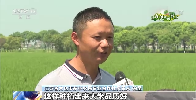 江苏省太仓市东林农场专业合作社负责人 徐坚:这样种植出的大米品质好,因为是绿色产品,每斤价格比普通大米多卖8到10块钱。现在水稻还是处于抽穗期,但是我种植的水稻已经全部被预订出去了。