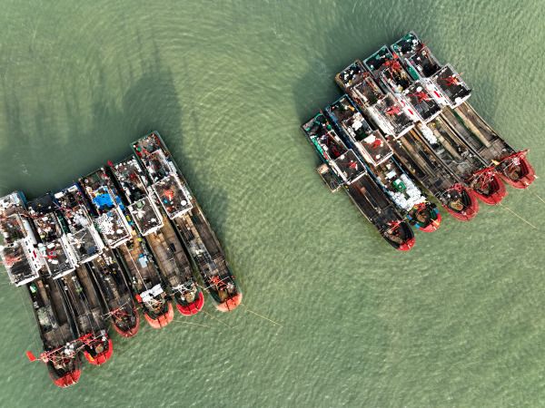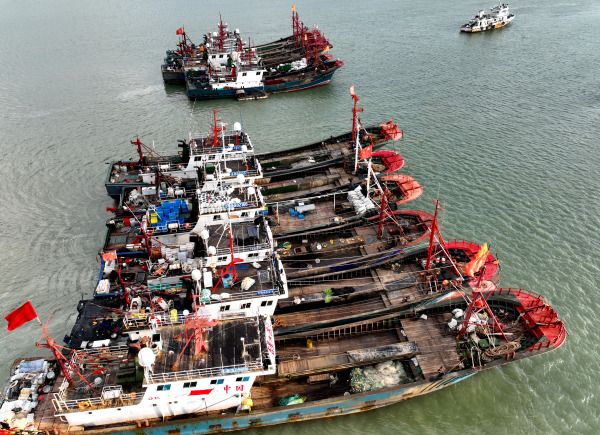 2022年9月13日,江苏省连云港市,受第12号台风“梅花”影响,当地沿海地区渔民纷纷进入各地渔港,加固缆绳,抛锚避风,做好防台准备工作。针对上海、江苏、浙江、福建、山东等省市可能将受台风“梅花”影响,水利部9月12日14时启动洪水防御Ⅳ级应急响应。
