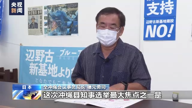 全冲绳会议事务局长 福元勇司:这次冲绳县知事选举最大焦点之一是,是否赞成在边野古建设新的基地。这次是反对新建基地的知事当选,反映了民众反对基地的意向。美军基地问题不断,冲绳民众反对呼声强烈。