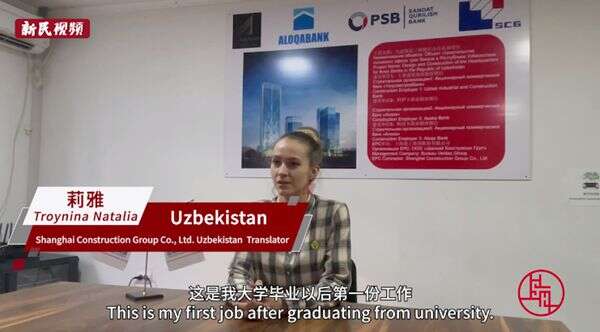 24岁的莉雅,是上海建工集团在乌兹别克斯坦塔什干ALOQA、ASAKA、PSB三座银行办公总部项目的翻译。工作两年多来,她看着三幢高楼一幢接一幢地拔地而起,当地也从一块荒地变成了塔什干的经济中心。