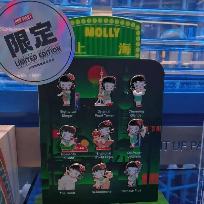 在泡泡玛特全球旗舰店,盲盒虽多,但并非全部。店里还有很多无须抽取、透明销售、可个性化选择的产品,如“泡泡萌粒”新品、结合上海特点设计的Molly系列徽章、收藏级别的手办玩偶、供消费者自行DIY的各种工具等,占比不低于盲盒类产品。