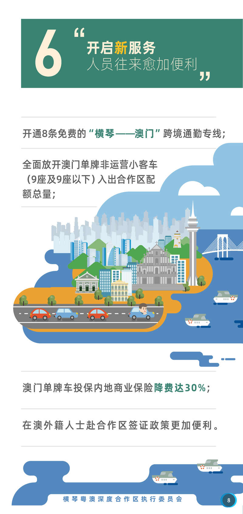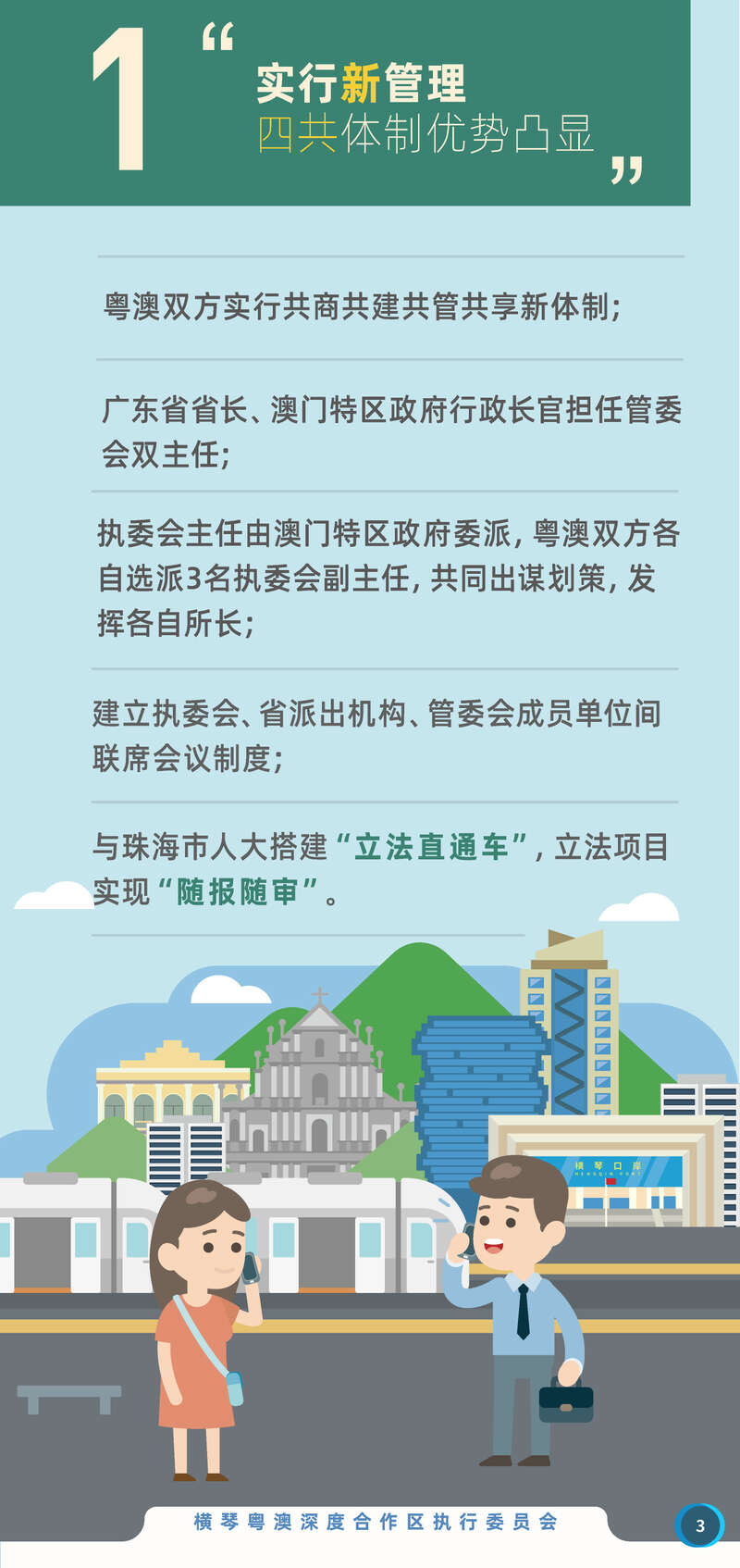 《横琴粤澳深度合作区建设总体方案》提出了合作区发展的多项政策突破。如“分线管理”、企业及个人所得税“双15%”、澳门居民个税优惠政策、30%加工增值进入内地免征关税、研究建设固网接入国际互联网的绿色通道、制定合作区市场准入清单等举措,都是极具突破性的创新政策,正处于相继落地过程中。
