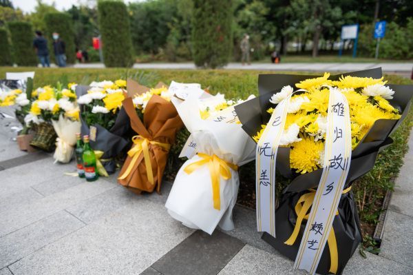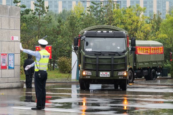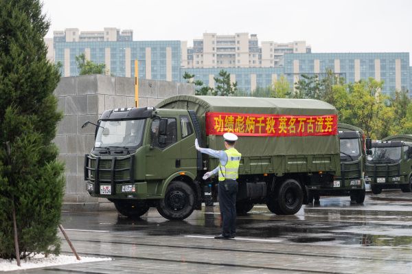 2022年9月16日,沈阳,第九批在韩志愿军烈士遗骸在武警战士护送下回到沈阳抗美援朝烈士陵园,参战老兵和各界群众纷纷来到现场迎接英雄归来。