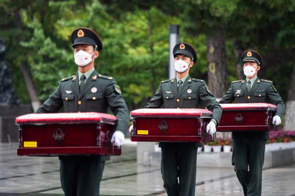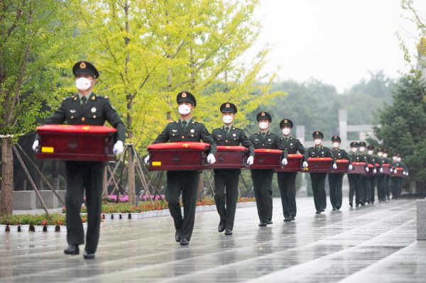 2014年到2022年,中国用最高礼遇迎接九批共913位在韩中国人民志愿军烈士遗骸回国,并安葬于沈阳抗美援朝烈士陵园。