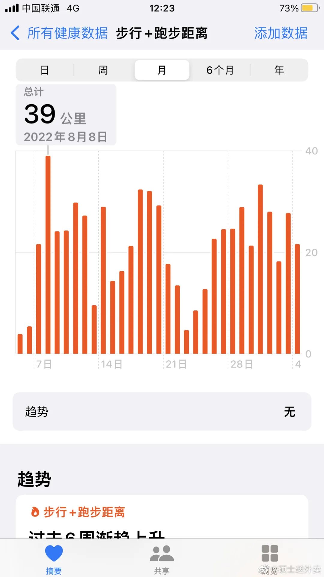 8月4日注册,7日正式接单到现在,第一天送了20多单,接近3万步。最多的一天,何成送了40多单,是重庆最热的那几天。