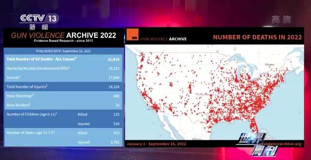 而美国“枪支暴力档案”网站9月16日发布的数据显示,今年以来,美国已有超过3.1万人死于枪支暴力。