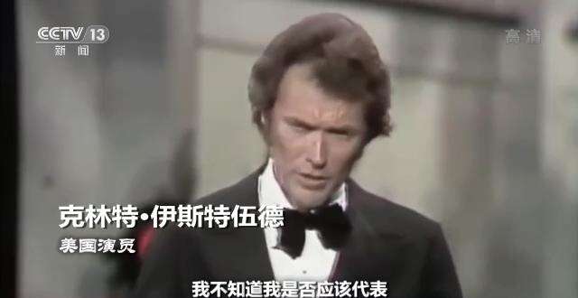 美国演员 克林特·伊斯特伍德:我不知道我是否应该代表这些年来约翰·福特西部片中所有被射杀的牛仔们颁发这个奖项。