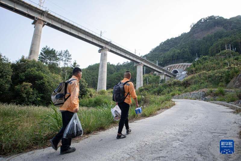 9月19日,看守员赵伟灯与蔡金矿采购好一周所需的各类生活物资,从龙泉市出发,搭乘1个小时的公交车,再走2公里的山路,抵达赤岭隧道的防洪值守点,与同事完成交接后开始一周与深山相伴的生活。