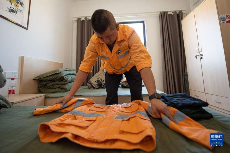 9月19日,看守员赵伟灯在寝室内准备值守期间的衣物。